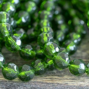 бусина, стекло 6, граненая, цвет зеленый, 6 мм