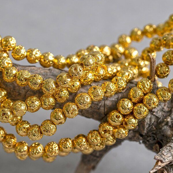 Бусина лава натуральная 6, цвет золотой металлик, 6 мм