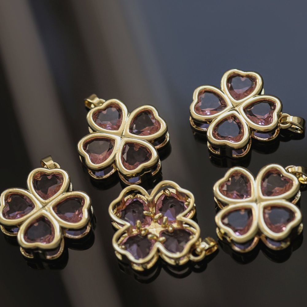 Подвеска в форме листиков клевера, выполнена из латуни. Позолота Real 18K Gold Plated.