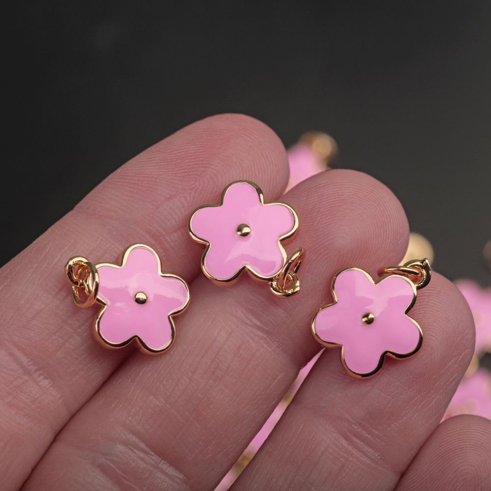 Подвеска металл "Незабудка", позолота/розовый, 14.5x12x1.3 мм