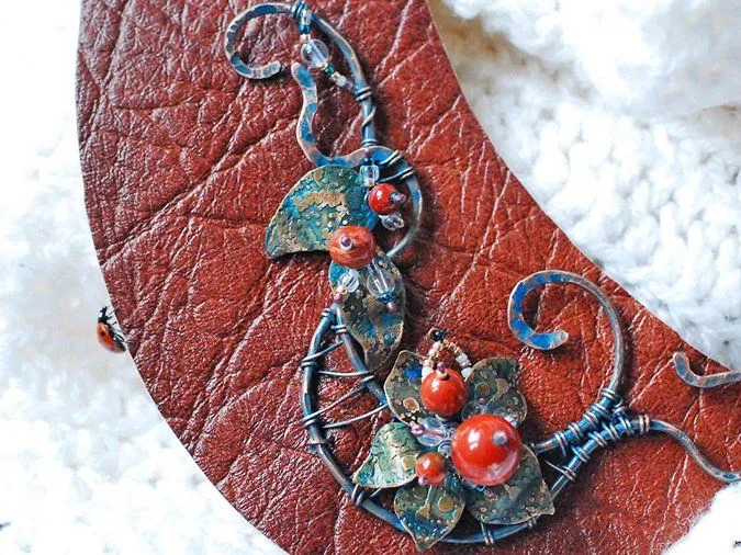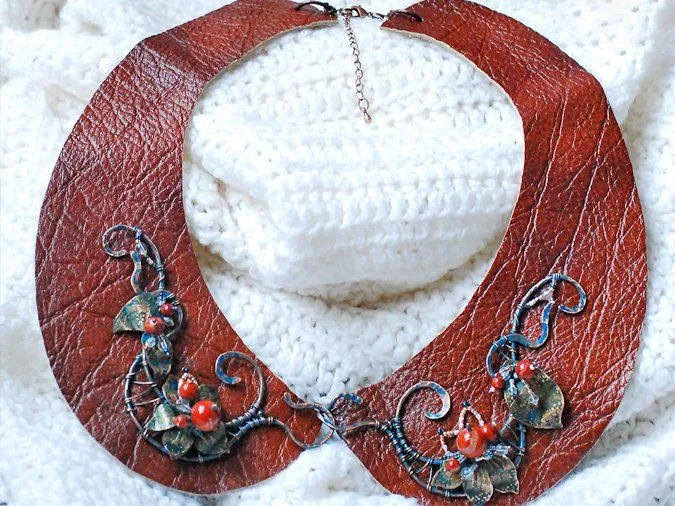 Сегодня у нас на вкусненькое мастер-класс по изготовлению воротничка из кожи с медным декором.