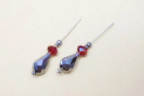 13. Откусываем излишек металла от пина и круглогубцами загибаем оставшийся конец подходящей длины в петлю. За эту петлю крепим крючок для серёжек. Зажимаем петлю.