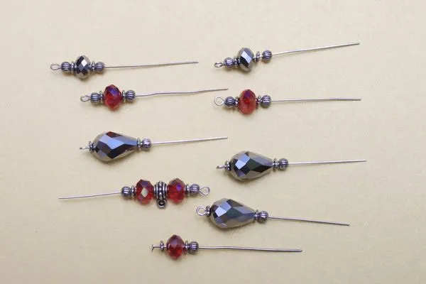 1. Набираем на пины бусины, чтобы получились звенья будущего колье