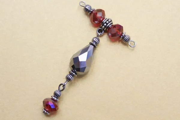 3. Звено с цветным ронделем присоединяем к звену с каплей со стороны широкого конца капли. Зажимаем пинцетом или плоскогубцами соединительную петлю.