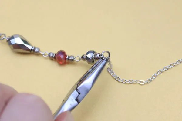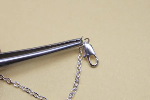 8. К петлям последних звеньев при помощи соединительных колец крепим два отрезка цепочки подходящей длины.