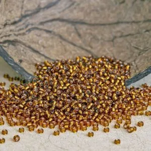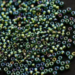 11. Нанизываем 3 бисерины, швензу и снова 3 бисерины. Проходим двумя концами лески параллельно.