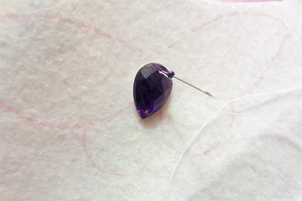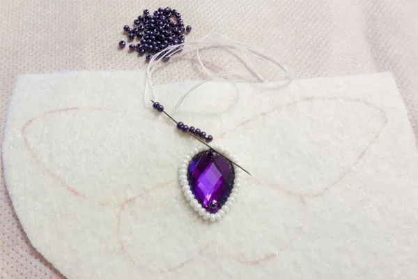 2. Начинаем делать тельце бабочки. Пришиваем страз к фетру.