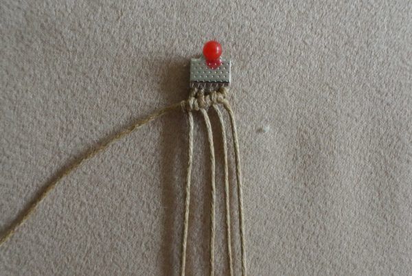 5. Центральную нить не используем для плетения, надеваем на нее бусинку.