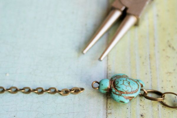 5. Обратите внимание, что при работе с цепями с крупными звеньями, звенья расцепляем с помощью круглогубцев! Присоединяем отрезок цепи к черепахе (петельке)
