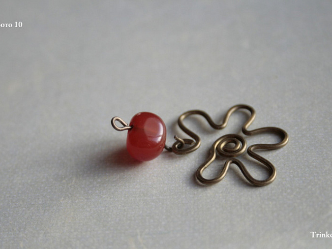 9. с помощью круглогубцев сделаем петлю. Не до конца закроем петлю и присоединим подвеску цветочек