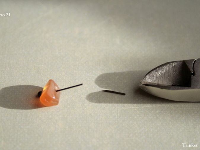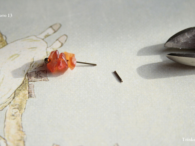 11. Возьмем три бусинки, наденем на пин с шариком и подрежем, примерно 5 мм,