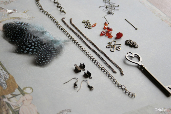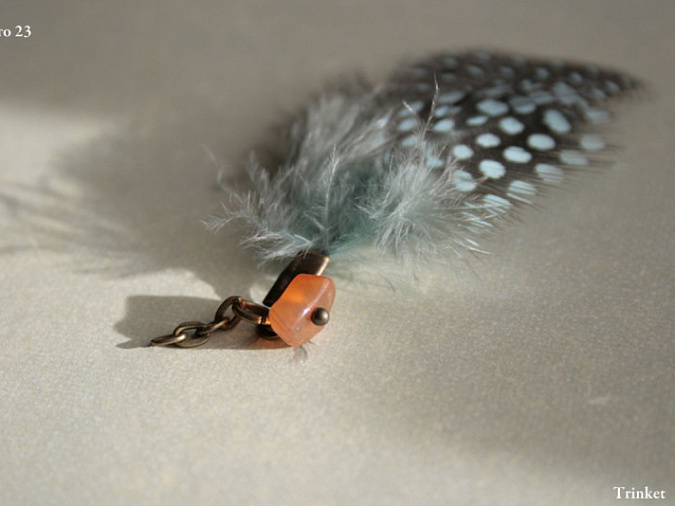 22. Возьмем 10 мм цепи, присоединим с помощью соединительного колечка перо и накрученную бусинку.