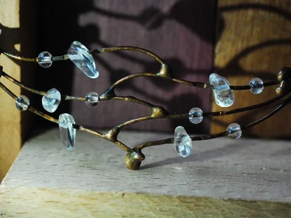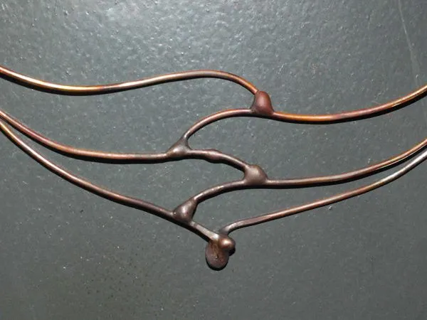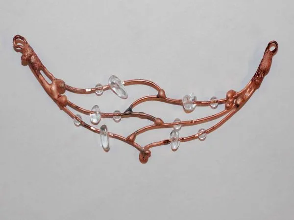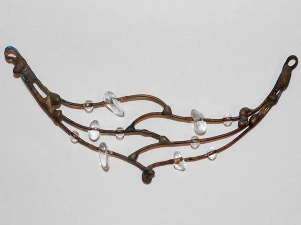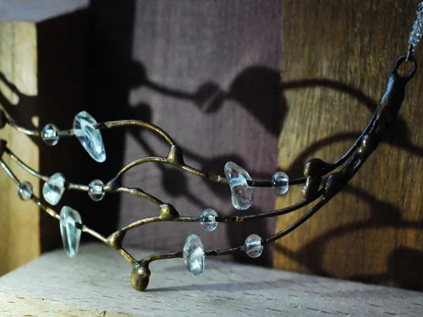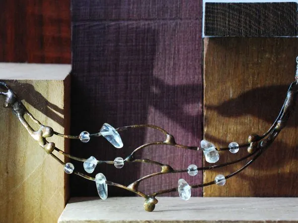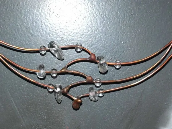 16. Тросик обрезаем, кримп зажимаем плоскогубцами и нанизываем оставшиеся низки. Вот так выглядит получившееся колье.
