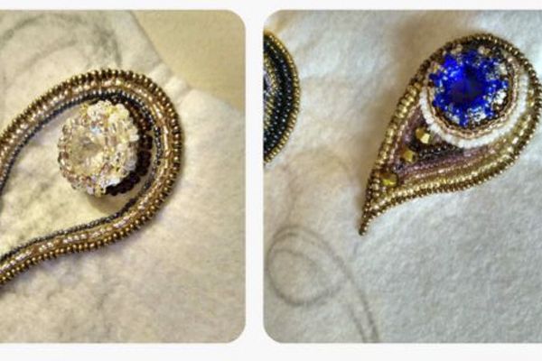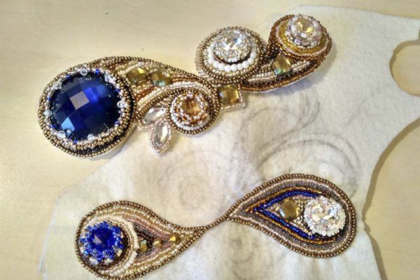 10. Оплетаем риволи согласно нашим наброскам и пришиваем их на свои места.