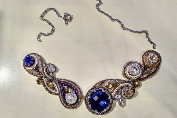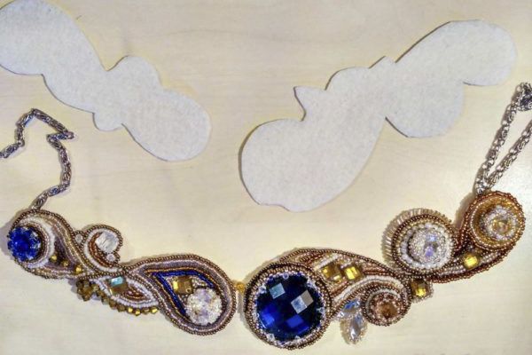14. После того как были соединены два части изделия, лучше его примерить: приложить на платье или на шею, чтобы понять где лучше расположить цепочку.