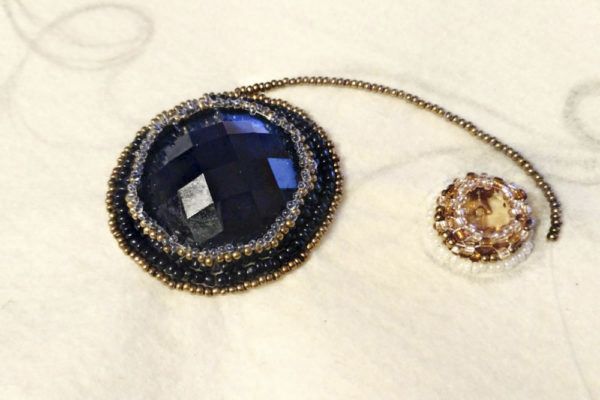 4. Далее я сделала третий ряд, серого цвета и закончила на этом, убедившись что бисерины хорошо держат кабошон на месте.
