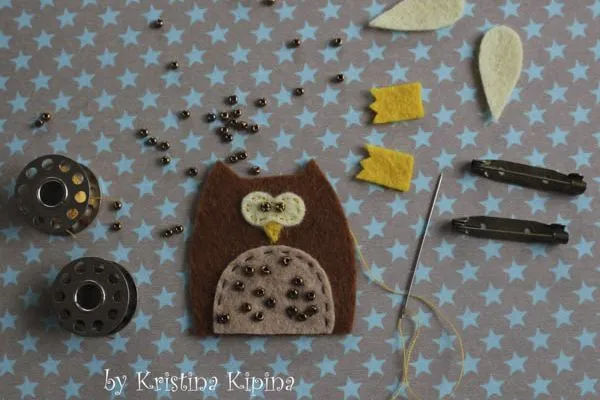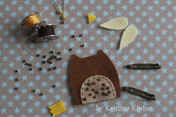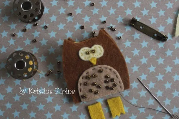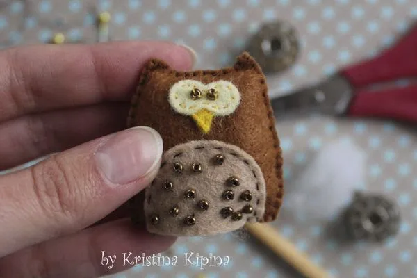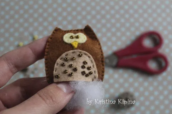 8. Начинаем шить. Декорируем пузико совы бисером и пришиваем его к тельцу.
