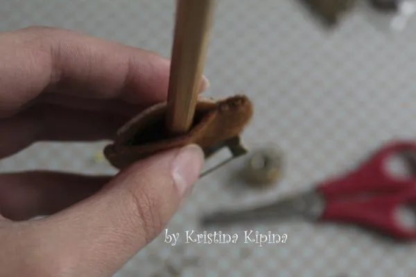 14. Обшиваем всю птичку и приступаем к набивке. Набивать следует маленькими кусочками, помогая карандашом утрамбовывать.
