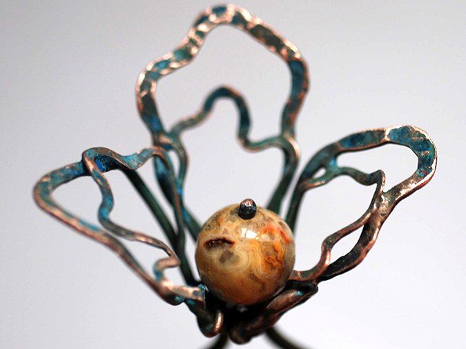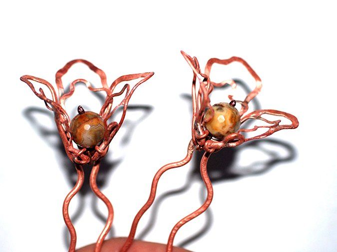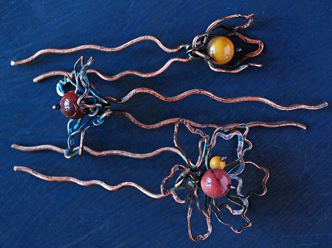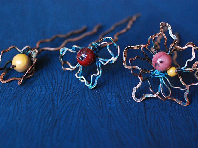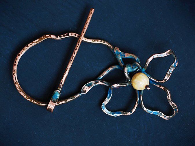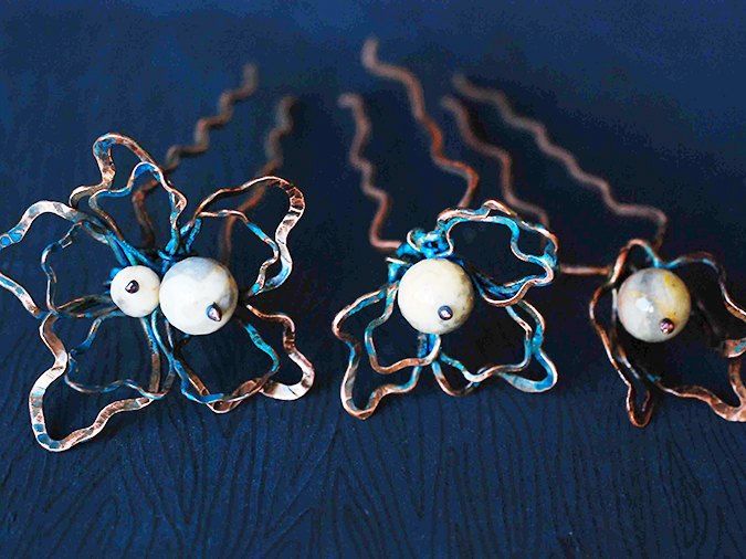 Представляем вашему вниманию мастер-класс по изготовлению цветка из медной проволоки - можно использовать как для шпилек, так и для любого другого изделия (как пример представлены брошь-фибула и колье). Мастер-класс подготовила